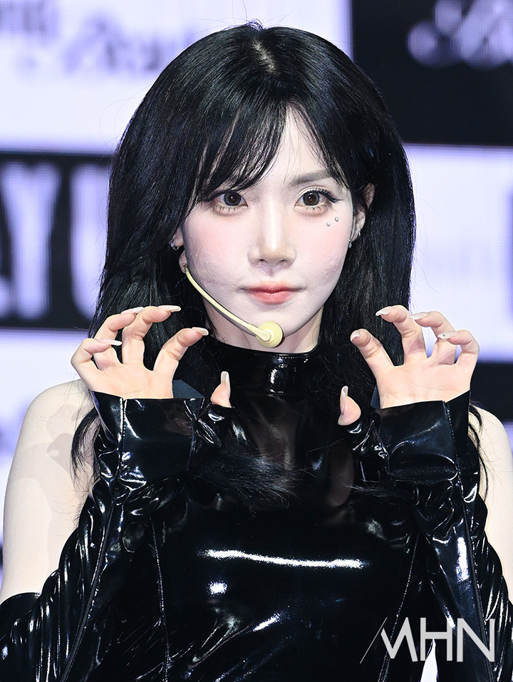 (MHN 이현지 기자) 그룹 트리플에스(tripleS) 미소녀즈(msnz) 김나경이 24일 오후 서울 용산구 블루스퀘어에서 열린 앨범 'Beyond Beauty' 발매 기념 쇼케이스에서 포토타임을 갖고 있다.