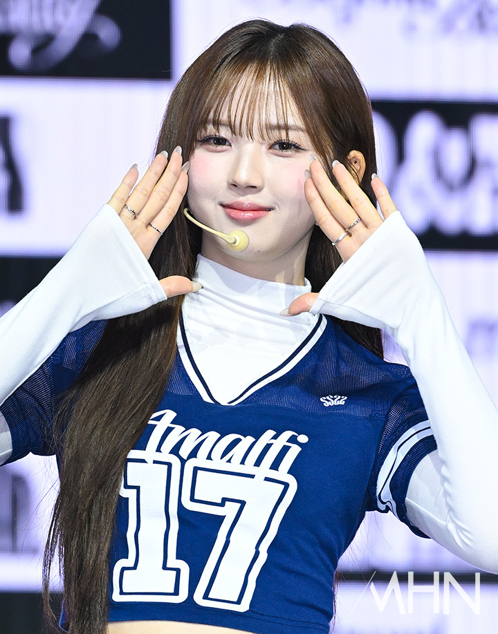 (MHN 이현지 기자) 그룹 트리플에스(tripleS) 미소녀즈(msnz) 이지우가 24일 오후 서울 용산구 블루스퀘어에서 열린 앨범 'Beyond Beauty' 발매 기념 쇼케이스에서 포토타임을 갖고 있다.