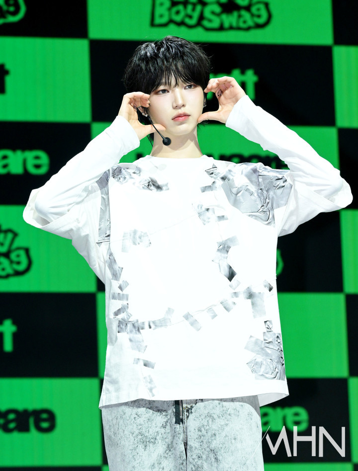 이날 쇼케이스에 참석한 아이덴티티 이재영이 포즈를 취하고 있다.