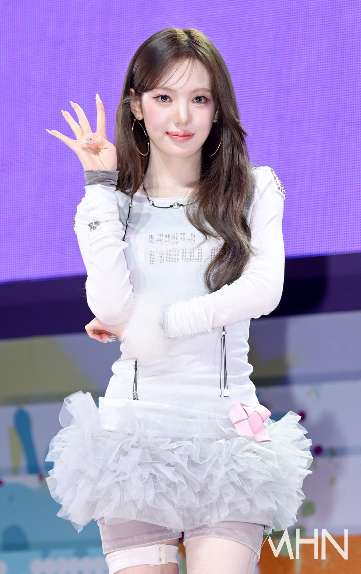 (MHN 이지숙 기자) 그룹 키키(KiiiKiii) 수이가 26일 오후 서울 광진구 예스24라이브홀에서 열린 미니 2집 ‘델룰루 팩(Delulu Pack)’ 발매 기념 쇼케이스에서 포즈를 취하고 있다.