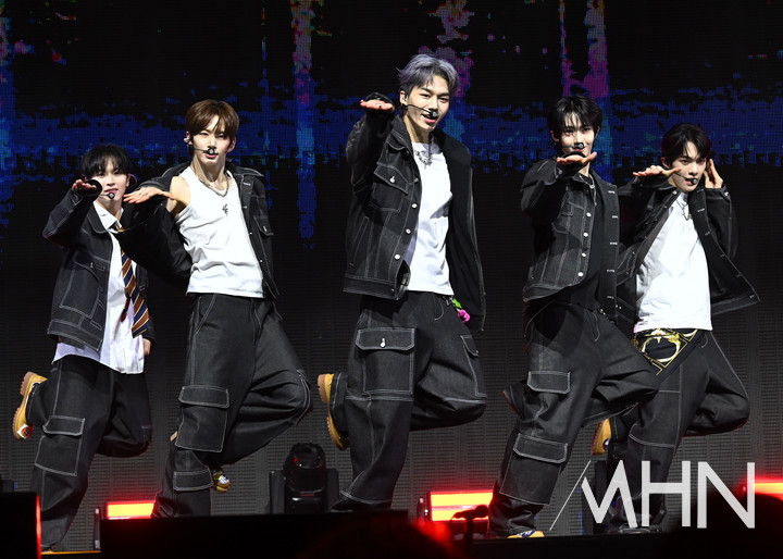 (MHN 이지숙 기자) 보이그룹 TUNEXX(튜넥스)가 3일 오후 서울 광진구 예스24라이브홀에서 열린 첫 번째 미니앨범 'SET BY US ONLY(셋 바이 어스 온리)' 쇼케이스에서 무대를 선보이고 있다.