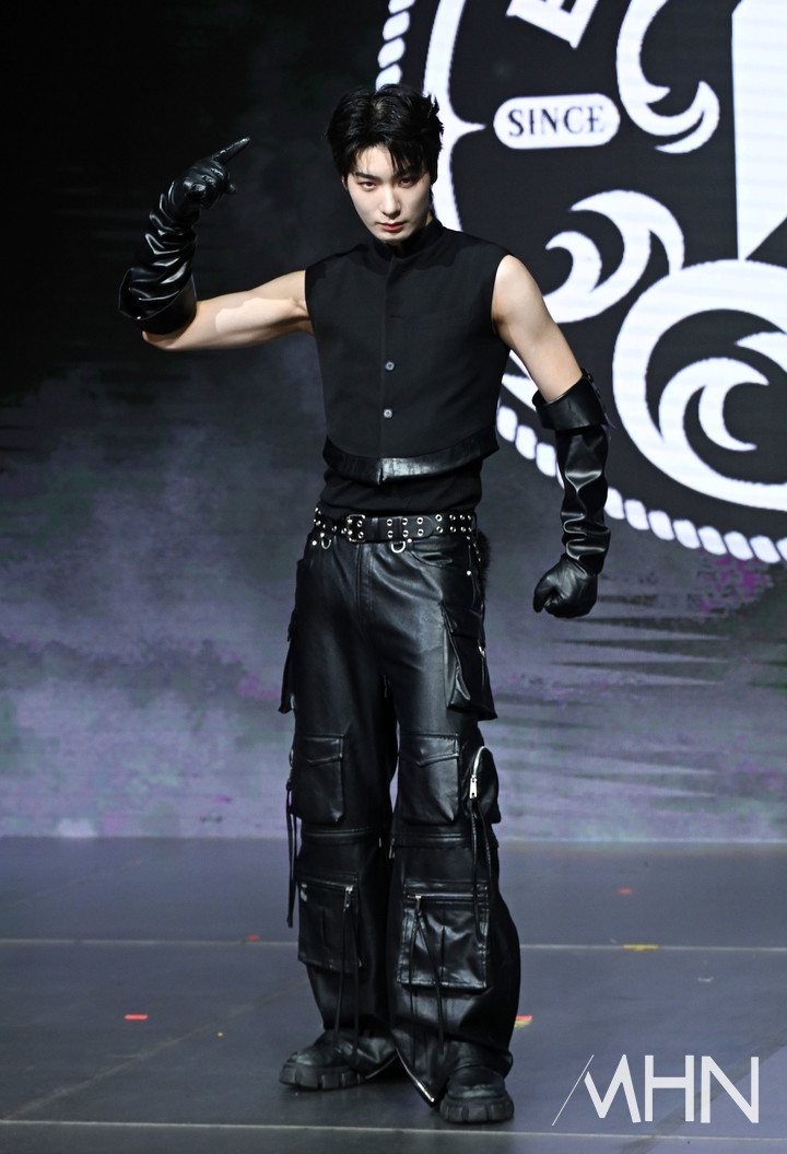 (MHN 이지숙 기자) 수어 아이돌 빅오션 지석이 3일 서울 마포구 쇼킹케이팝센터에서 열린 세 번째 미니 앨범 'THE GREATEST BATTLE'(더 그레이티스트 배틀) 쇼케이스에서 포즈를 취하고 있다.
