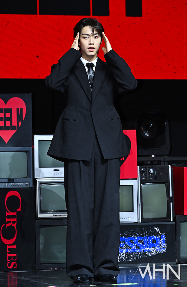(MHN 이현지 기자) 그룹 82메이저(82MAJOR) 박석준이 28일 오후 서울 마포구 예스24 원더로크홀에서 진행된 미니 5집 'FEELM'(필름) 발매 기념 쇼케이스에서 포토타임을 갖고 있다.