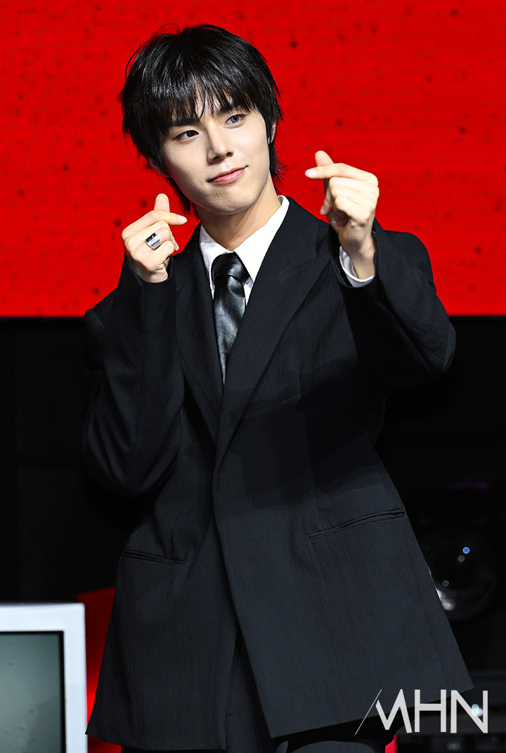 (MHN 이현지 기자) 그룹 82메이저(82MAJOR) 황성빈이 28일 오후 서울 마포구 예스24 원더로크홀에서 진행된 미니 5집 'FEELM'(필름) 발매 기념 쇼케이스에서 포토타임을 갖고 있다.