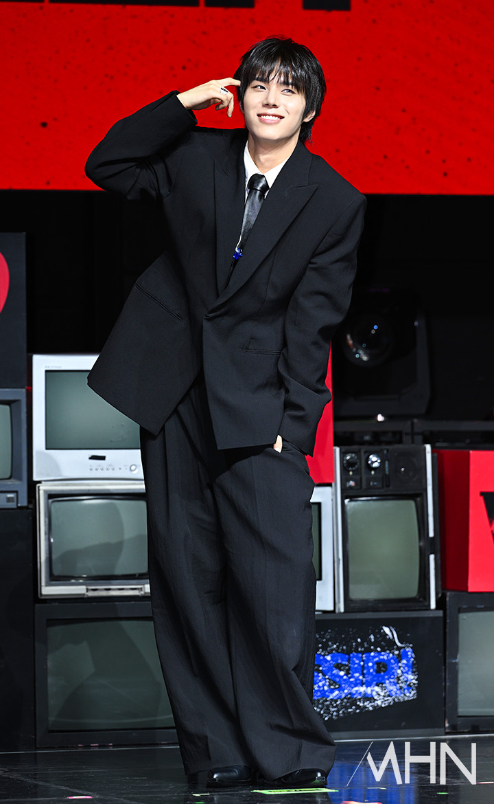 (MHN 이현지 기자) 그룹 82메이저(82MAJOR) 황성빈이 28일 오후 서울 마포구 예스24 원더로크홀에서 진행된 미니 5집 'FEELM'(필름) 발매 기념 쇼케이스에서 포토타임을 갖고 있다.